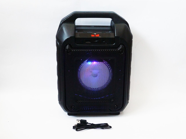 PA-аудіум'я колонка B31 Портативний дизайн: просте у використанні керування. Візьміть його із собою куди завгодно: всередині є акумуляторна батарея, тому ви можете вирушити на вечірку, на пляж, у похід, до будь-якого місця Багатофункціональне використання: має слот для карт пам'яті MicroSD, FM-радіо й антену, індикатор зміни кольору, так що ви можете завантажити улюблений застосунок для караоке — синхронізувати та співати улюблені мелодії (мікрофон до комплекту не входить). Має різнобарвні світлодіодні ліхтарі.