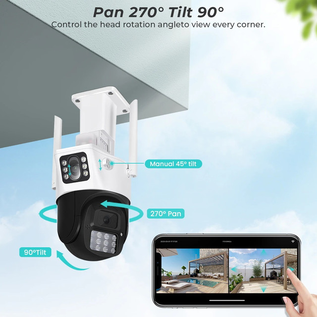 Через горизонтальне 270° і вертикального 90° ви можете віддалено керувати зовнішньою камерою Wi-Fi, щоб переглядати кожен кут через свій мобільний телефон.