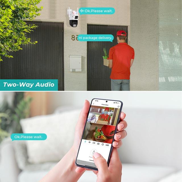 Вбудований мікрофон і динамік підтримують відео в реальному часі, що дає змогу вам розмовляти з відвідувачем у режимі реального часу, хай де ви будете.