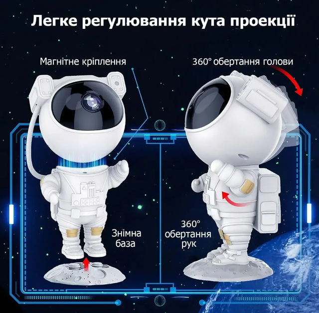 Проєктор зоряного неба. Світильник Космонавт Стоїть на підставці. Пульт