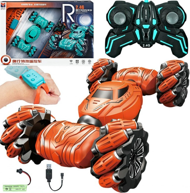Машинка-перевертень всюдихід Stunt Car 986-14 з керуванням від руки. Такого Ви ще не бачили. Мало того, що вона виконує розвороти на 360 градусів, вона ще вміє їздити боком, їздить догори ногами, дуже швидка та гарна, так само вона керується від браслета, який кріпиться на руку. Тепер машинка та драйвер одне ціле. Опустивши трохи руку вперед, машинка мчить вперед, потрібно об'їхати перешкоду, легко, нахиляєш руку вліво або вправо, і машинка тут-же реагує на команду! Гратися будуть усі, від малого до великого. Чудовий подарунок на будь-яке свято.