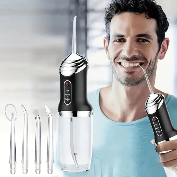 Цей бездротовий іригатор для порожнини рота забезпечує глибоке очищення порожнини рота, видаляючи наліт і залишки їжі між зубами та вздовж ясен. З чотирма різними насадками, він підходить для всіх потреб вашого догляду за порожниною рота, забезпечуючи свіже дихання і здорові ясна в будь-якій ситуації.